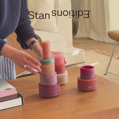 CANDL STACK 06 is the ultimate expression of the modular candle collection by Belgian design brand Stan Editions. This 6-piece set includes four stackable candles and two sculptural holders that interlock to create a bold, architectural centerpiece.